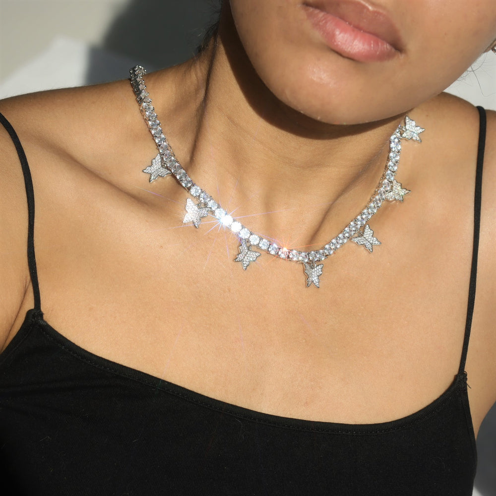 Women's 5mm Butterfly Tennis Chain in White Gold