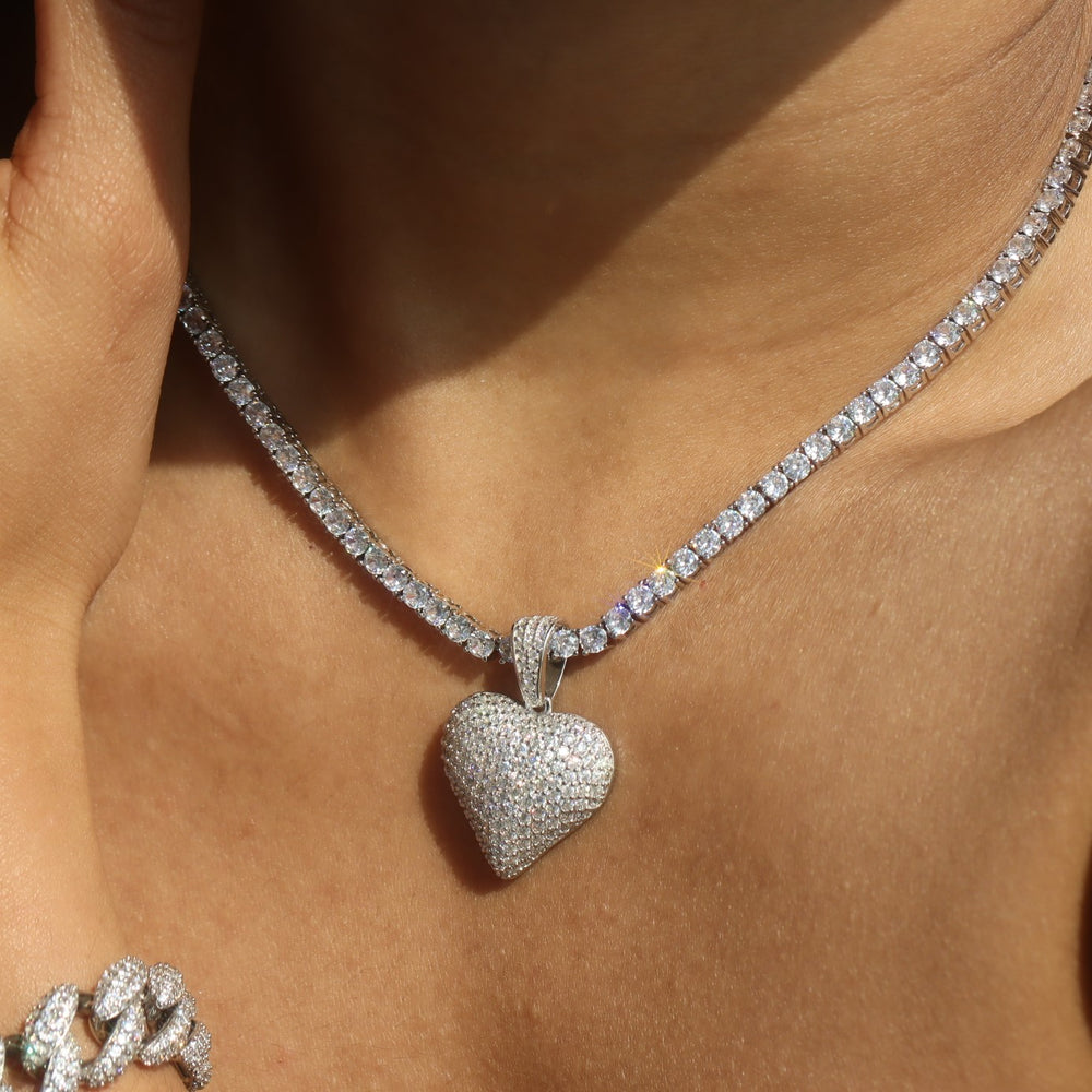 Women's Diamond Heart Pendant with 4mm Tennis Chain in White Gold