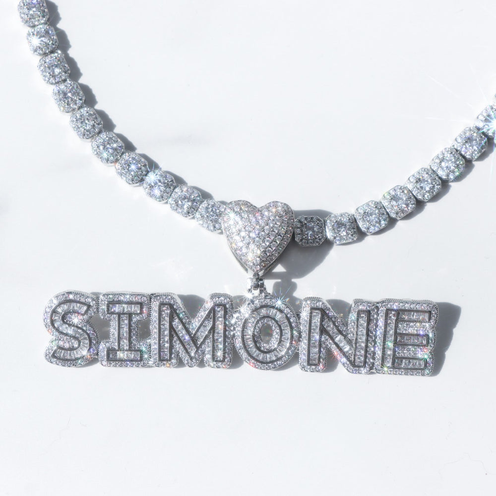 Women's Heart Bail Small Baguette Custom Name Pendant Necklace