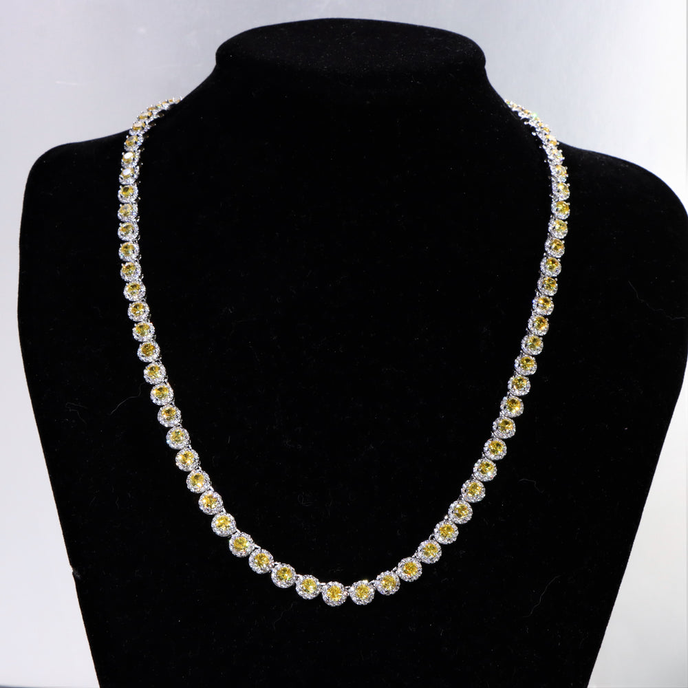 Women's Round Cut Yellow Clustered Tennis Necklace White Gold