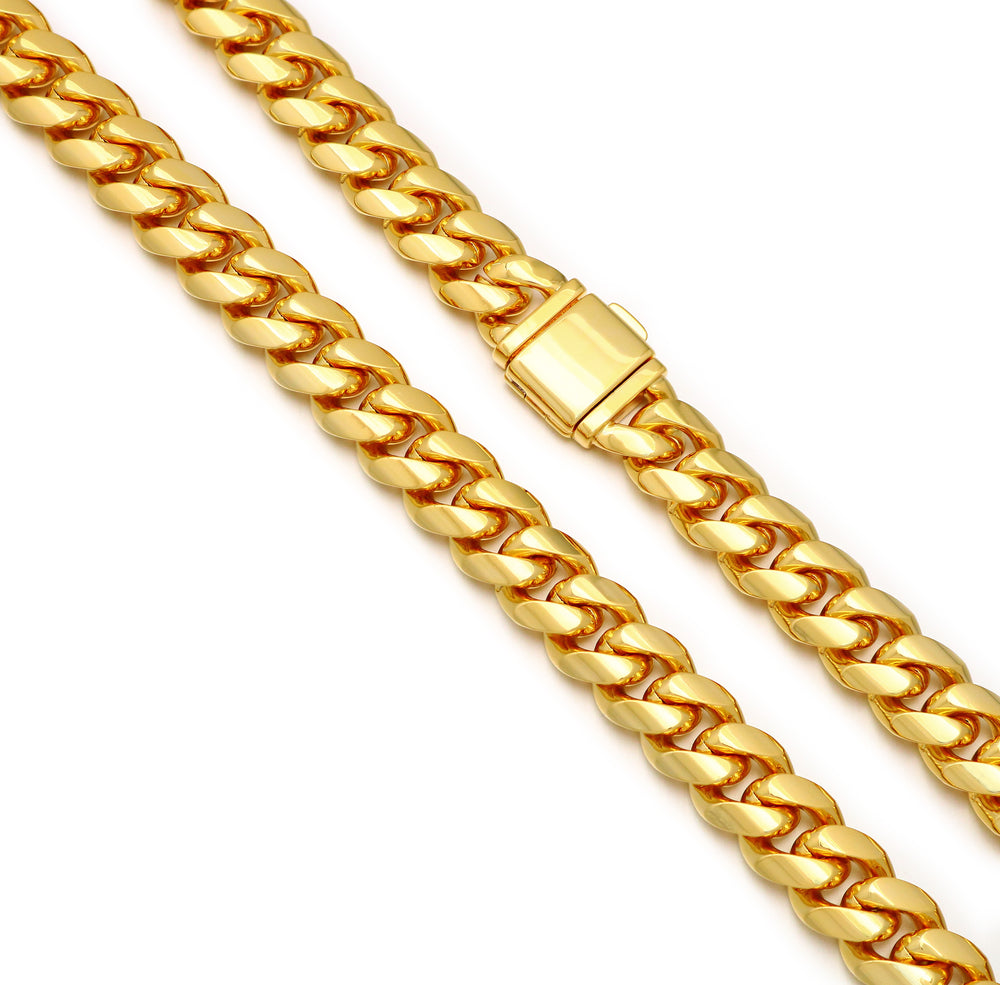 12 mm kubanische Gliederkette + Armbandpaket 18 Karat vergoldet