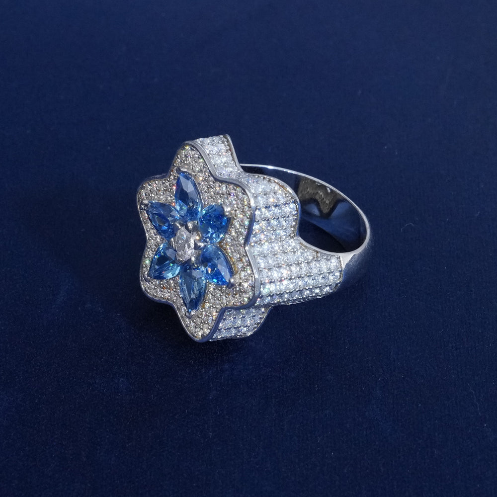 Moissanite Blue Flower Iced Ring