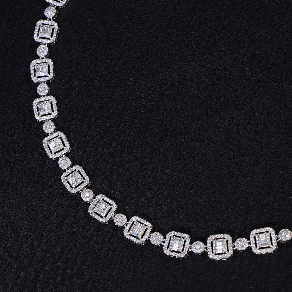 9.5mm Moissanite S925 Baguette Clusted Tennis Chain in White Gold
