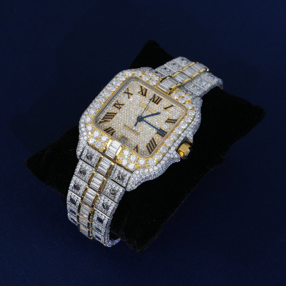 Moissanite Two Tone Roman Number Automatic Watch