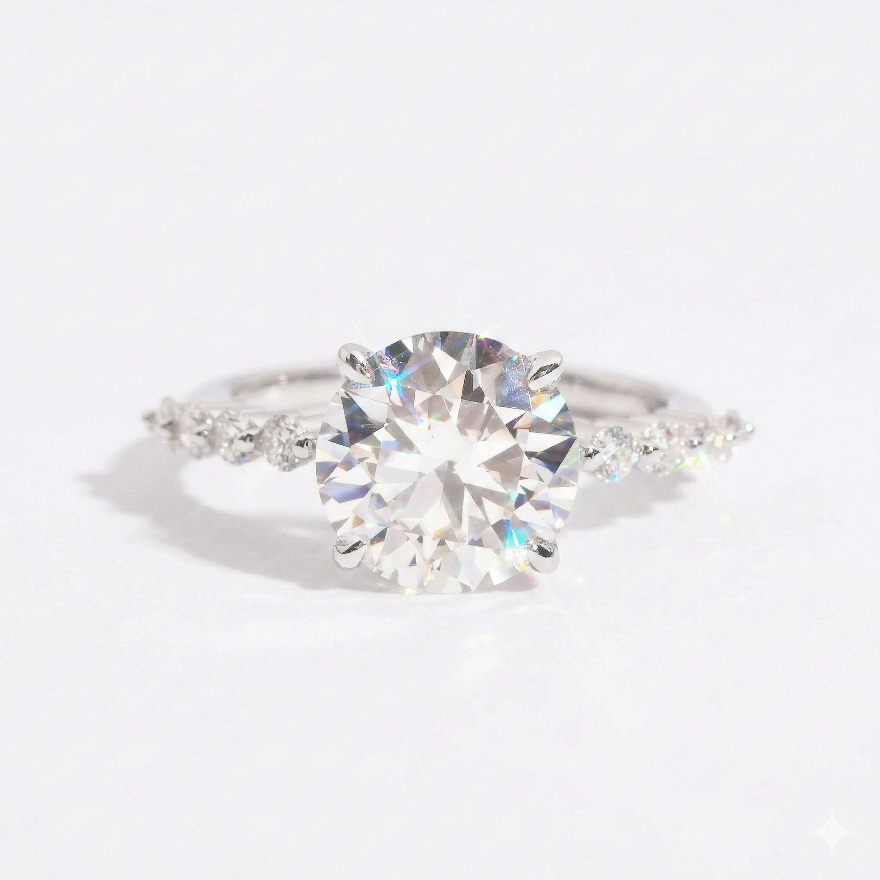 • Center Stone: 1 pcs 4 Ct Round Cut Moissanite