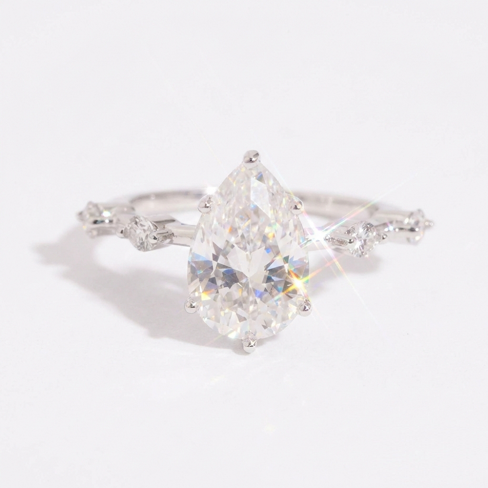 Eterna Pear Cut Moissanite Ring with Accent Stones