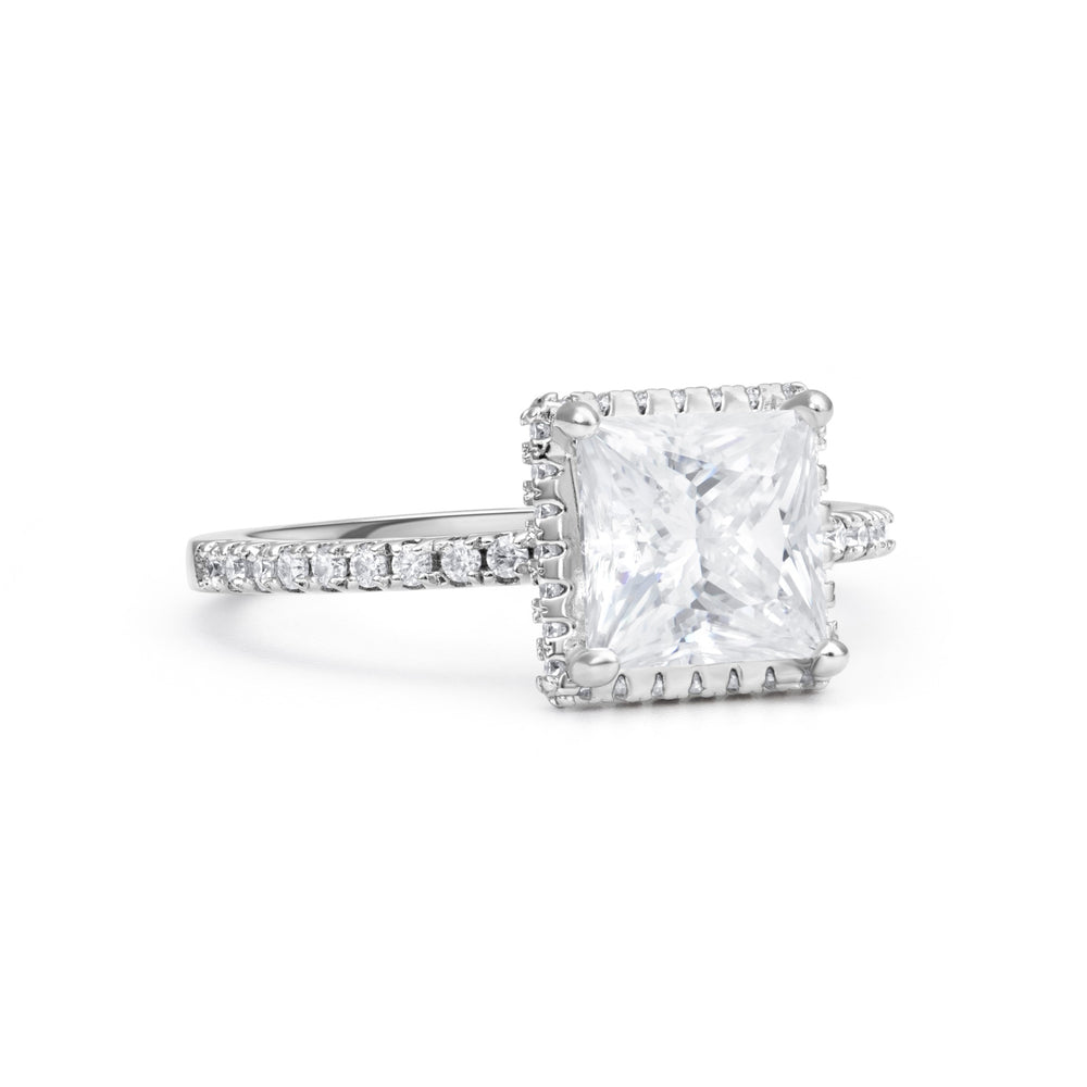 Adorned Hidden Halo Princess Cut Moissanite Ring